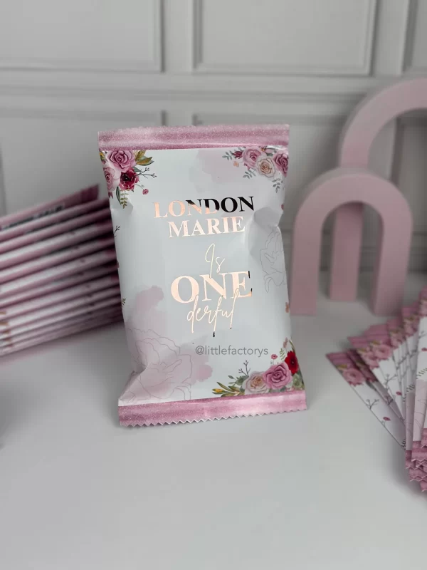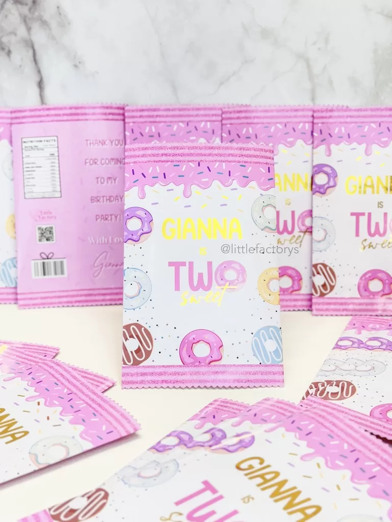 Nuestras Chip Bags son perfectas para envolver papas, dulces, galletas y más, añadiendo un toque moderno y elegante a tu evento.
