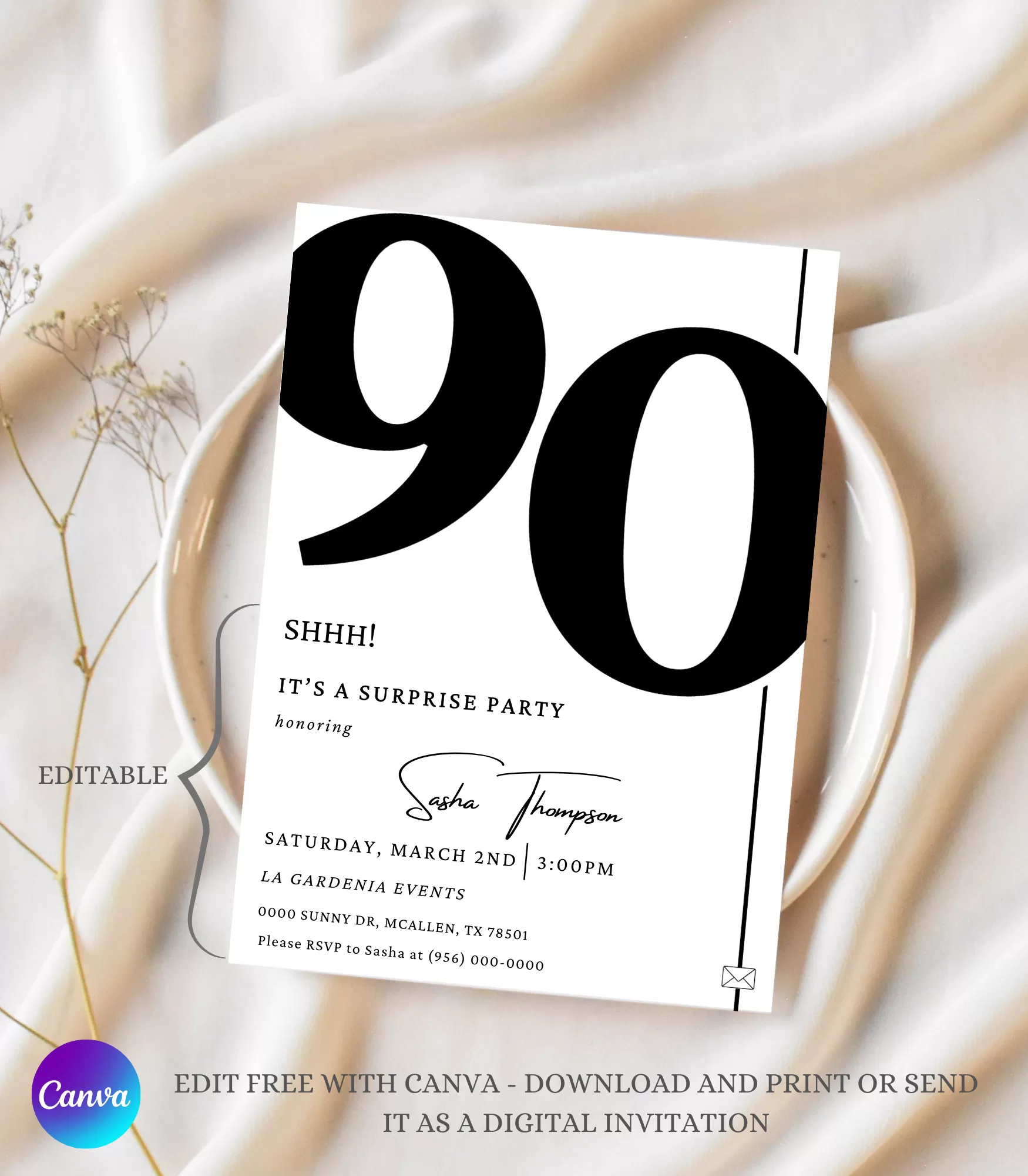 90th Birthday Party • Invitation Canva Template • Lifetime Access
