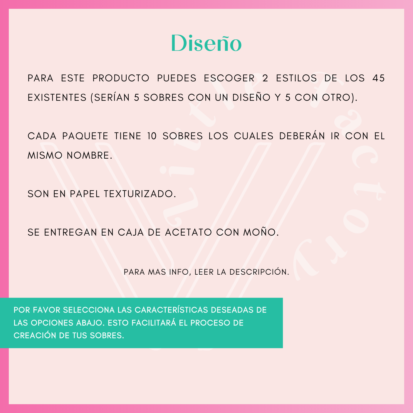 Diseño: puedes elegir hasta 2 diferentes (50% cada uno) y son hechos en papel texturizado.