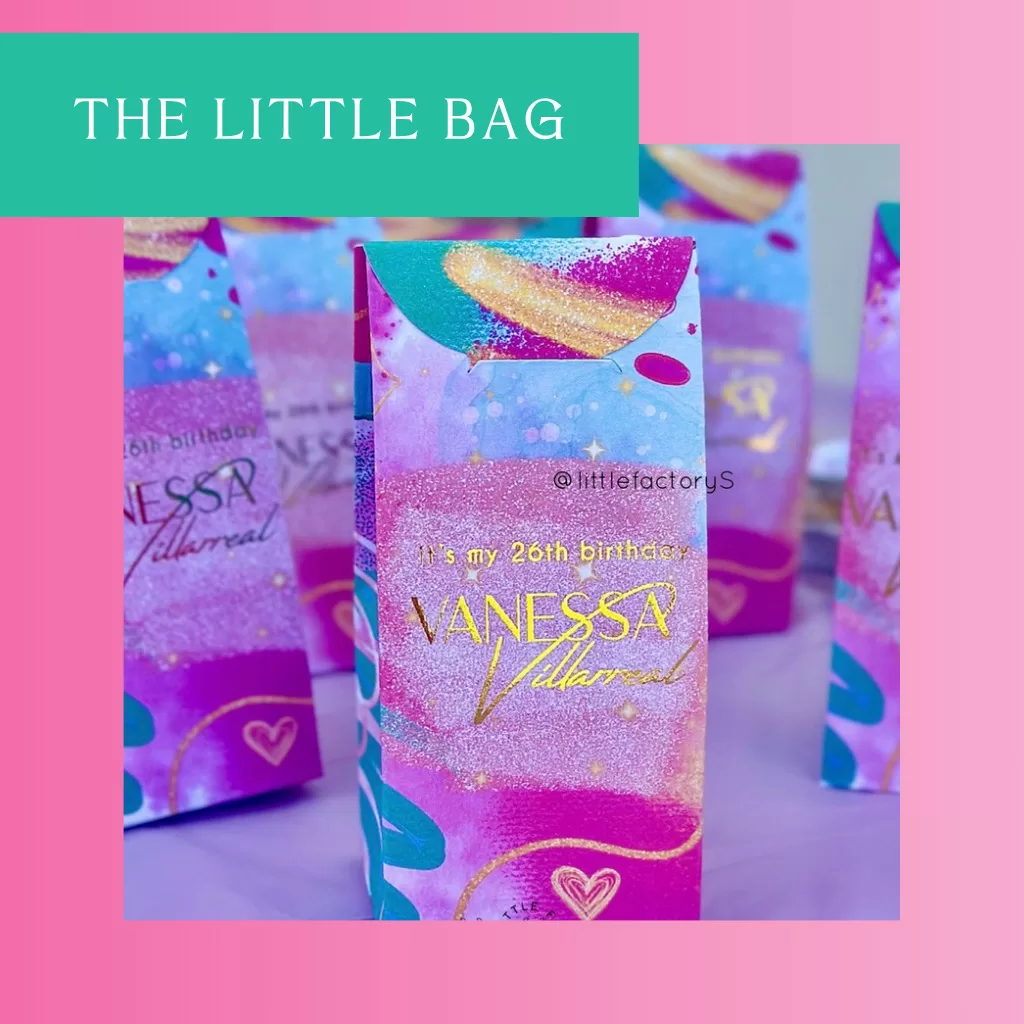 ¡Despide a tus invitados con un detallito encantador! Nuestras Little Bags personalizadas son bolsitas pequeñas, prácticas y adorables para entregar dulces, recuerdos o mini regalitos. Fáciles de transportar y con un diseño que llevará tu evento directo al corazón de tus invitados.